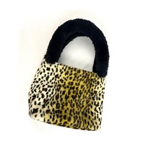 Vintage 1990’s Esprit Leopard Faux Fur Top Handle Mini Clutch Handbag