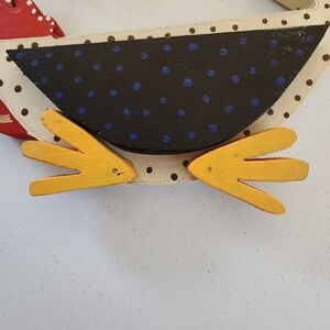 Vintage 1990s Folk Art Rooster Chicken Kitchen Whimsy Wood Carved Hand Painted