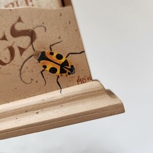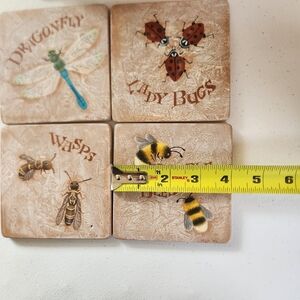 Vintage 1990s Hand Painted Wood Coasters Bees Dragonfly Lady Bugs Folk Art