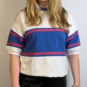 Vintage 1990’s Jordache Jersey Style Oversized Tee Shirt in White • Stripes - M