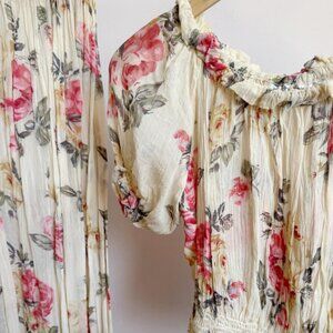 1990s two piece with cropped off-the-shoulder peasant top and maxi skirt.