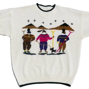 Vintage 1990s Novelty Skiers Sweater, size XL