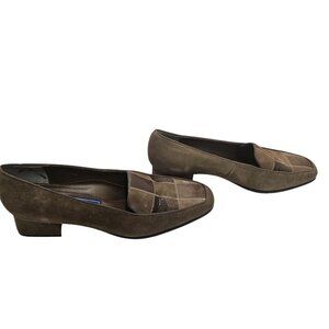 Vintage 1990s Pierre Michel Womens Brown Suede & Patent Leather Heels Size 10B