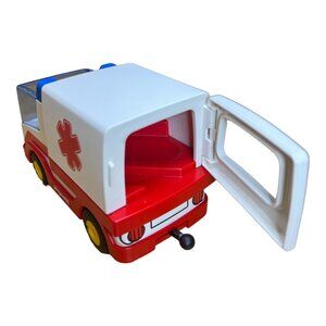 Vintage 1990's Playmobil 4 Figures Firemen First Aid & Customs Boat Ambulance