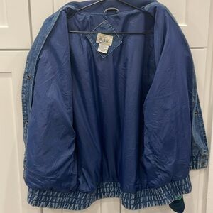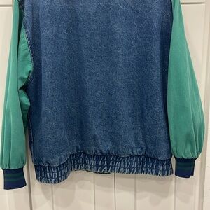 Vintage 1990s Street Worn Denim and Green Bomber Jacket