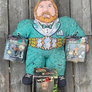 Vintage 1990s WWF WWE Wrestling Toys Bundle - Sealed CM Punk, Stuffie & More
