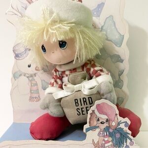 Vintage 1991 Applause Precious Moments Winter Bird Seed Feeding Girl Doll