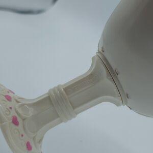 Removable lace skirt with pink & green ribbon. She's wearing her pearl earrings & necklace. No noticeable fragrance.