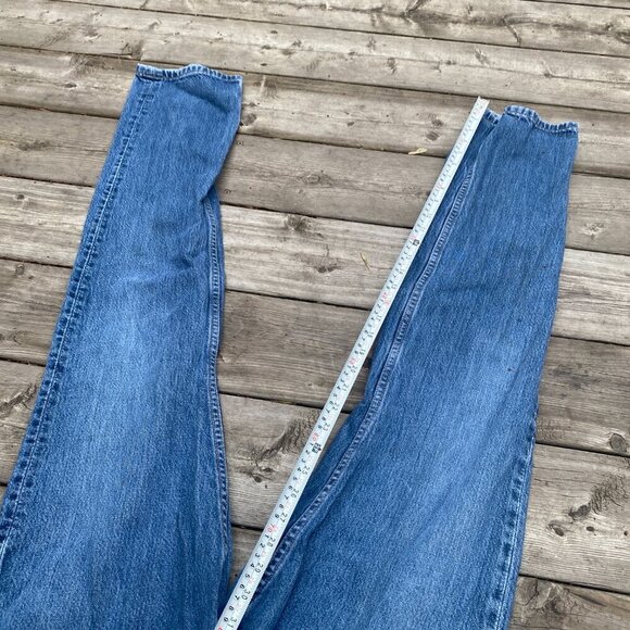 The size on the label is faded but looks like 30 - I would say these fit like a 27 in current Levi’s.