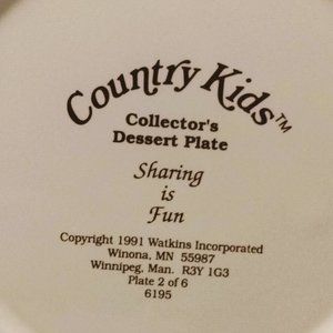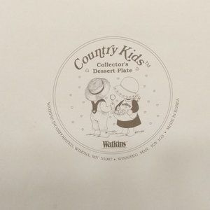 Vintage 1991 Watkins Country Kids Collectors Plate-Org. Recipe Booklet/Box Inc.