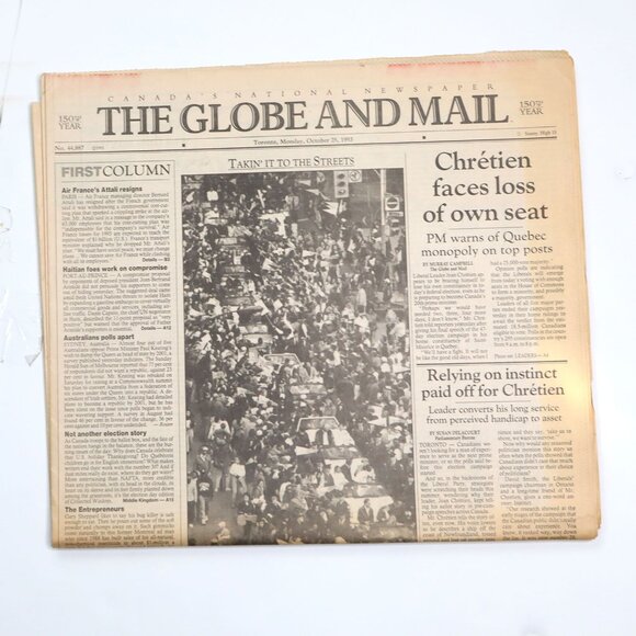 Vintage 1993 Globe & Mail Newspaper Toronto Blue Jays Championship Game Baseball