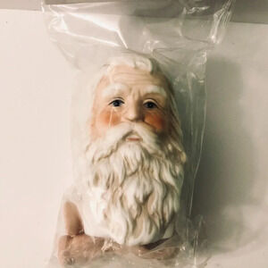 This Santa doll head is in original packaging. The packaging has some creases and wear from storage. Please see all photos for exact item.