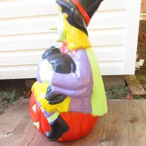 Up for sale is a Vintage 1993 TPI 23" Witch Black Cat Pumpkin Halloween Blow Mold -Made in Canada. The light is missing. The paint is in very good condition with only a few small mior scratches.
