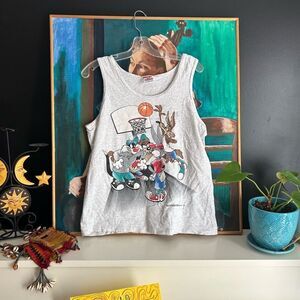 Vintage 1994 Graphic Tank Top - Warner Bros Basketball - Men's M Single Stitch