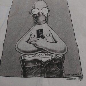 Vintage 1994 hanes double White The Simpsons Homer Cartoon Couch Potato Tshirt