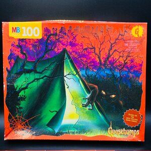 1995 Goosebumps 100 piece Jigsaw Puzzle -COMPLETE- Welcome to Camp Nightmare #9 Book, Vintage Kids Horror Novel Series, Xennials Pop Culture