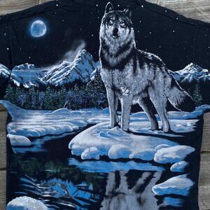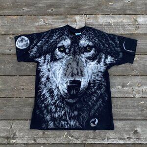 Vintage 1995 Liquid Blue T Shirt AOP Large John Connell Wolf Moon T Shirt AOP