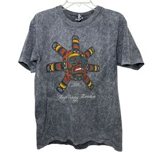 1995 Royal Victoria Marathon tee showcasing the “Kwa-Gulth Sun Mask” by acclaimed Kwakwaka’wakw artist Richard Hunt.
