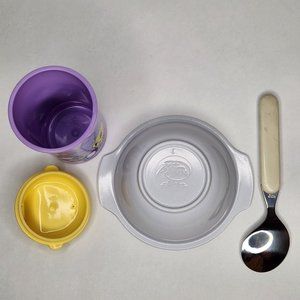 Includes bowl, spoon & plastic sippy cup - awesome vintage condition, great gift or add to your collection!