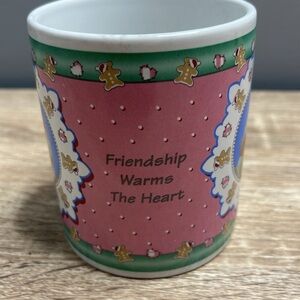 Vintage 1997 Cherished Teddies Christmas Friendship Coffee Mug by Enesco Priscilla Hillman.