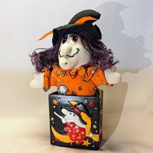 Vintage 1997 Halloween Witch Plush Doll Figure in Ceramic Bag RARE by Joelson In