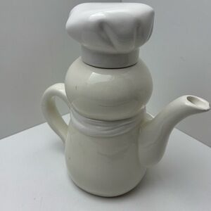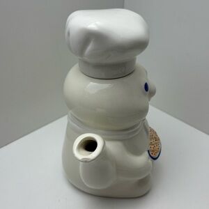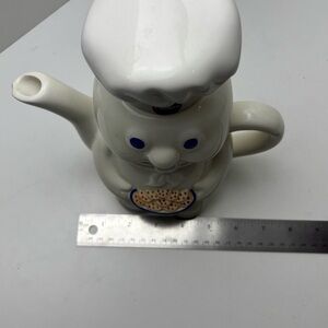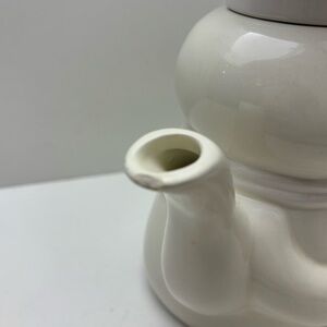 Vintage 1997 Pillsbury Doughboy ceramic teapot with removable hat. In very good preowned condition with no cracks or crazing in the finish. Inside is clean. There is one chip on the end of the spout (pictured), but no damage otherwise.