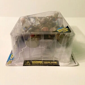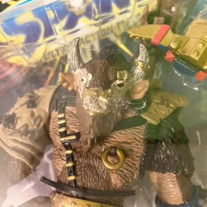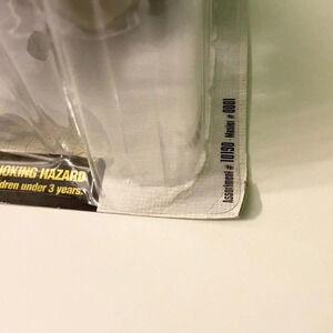 This figure is sealed in package but the packaging is warped from storage. There is a mark on the plastic packaging right where the figures face is. The edges and corners are all creased. Please see all photos for exact item.