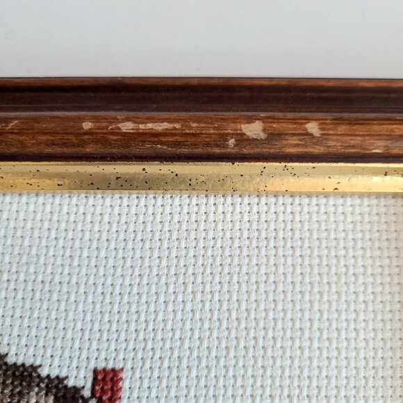 Vintage 1997 framed needlepoint picture with knitting little girl.