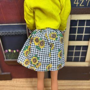 * Wears her yellow sunflower outfit
