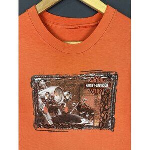 Vintage 1998 Harley Davidson Motorcycle Montana Missoula MT Orange Shirt Chopped