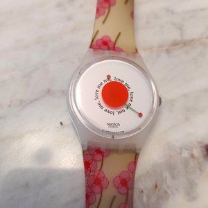 Vintage 1998 Love Me Floral Swiss Swatch Watch For Women. New Battery. The strap has a spot with minor discoloration on the back. No scratches on the crystal. Keeps accurate time.