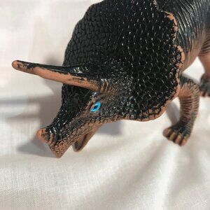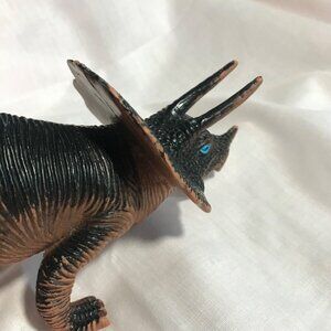 Vintage 1998 TRICERATOPS Toy Figure Dinosaur Black Brown Blue Eyes Squishy Vinyl