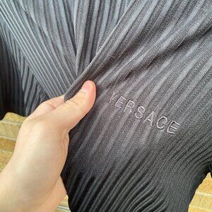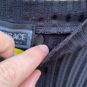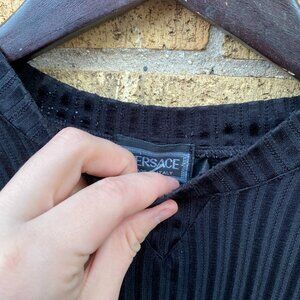 Vintage 1998 Versace Ripple Knit Logo T Shirt Black Size 54
