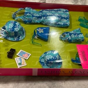 Includes: 2 dresses, 2 pairs of sandals, and 5 accessories