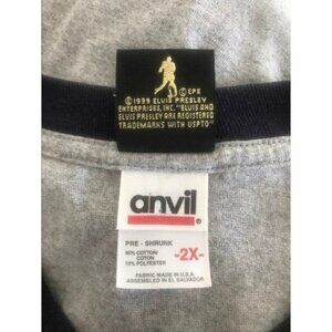 Vintage 1999 ELVIS T-Shirt Mens Size 2XL Gray Navy Designed For Elvis Graceland