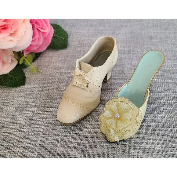 Vintage miniature Nostalgia ceramic/resin ladies shoe decorative figurines, approx 3'x4'