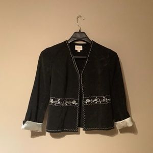 Made in China, Size 12 Petit, Embroidered Formal Jacket 100 polyester, 23” length, Satin Sleeveless Blouse,
