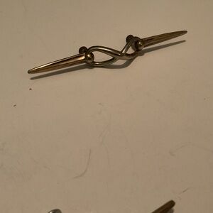Vintage 2 Atomic metal pulls for furniture. My husband has always been a saver, so yeah he took these lovely pulls off of a cabinet or dresser T some time. I do believe it was a bedroom drawer set, light ash. Please checked pictures out, they are used