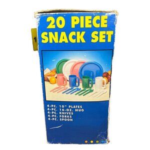 Vintage 20 Pc Snack Set Plastic Tableware 4 Person Setting Camping Picnic Orange