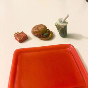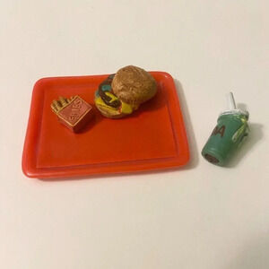 This figure is pre-owned and in used condition. It has some minor marks and wear. It comes with the tray, fries, burger and soda. The soda is not as magnetic as the burger and fries. It does not stay on the tray. Please see all photos for exact item.