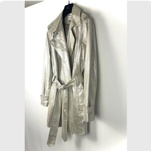 Vintage 2000’s ‘Chico’s’ Suede Belted Leather Jacket Trench Coat in Silver - L