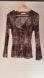 Vintage 2000s Printed Ruffle V-Neck Long Sleeve Pleated Top M