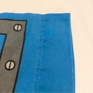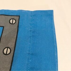 This pillow case is pre-owned and I’m used condition. The graphics have some wear. There is a small white mark on the edge. Please see all photos for exact item.