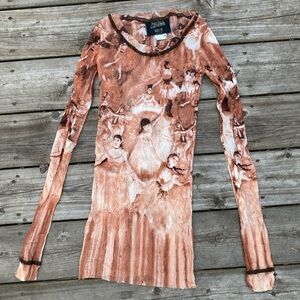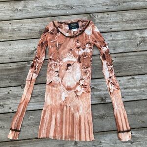 Vintage 2004 Jean Paul Gaultier Edgar Degas Ballerina Mesh Sheer Shirt Small