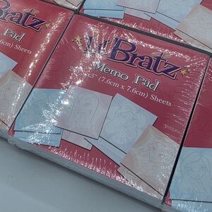 These cute memo pads were part of the Lil Bratz 2004 school supplies collection. Each pack contains 200 3x3 inch sheets of a mix of pink, purple, blue & orange note pads with the Lil Bratz faces on them! Sealed in original packaging.
