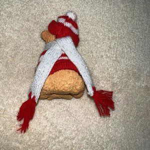 Mother Bear and Baby Figurine Holding Heart Wearing Red White Hat Scarf