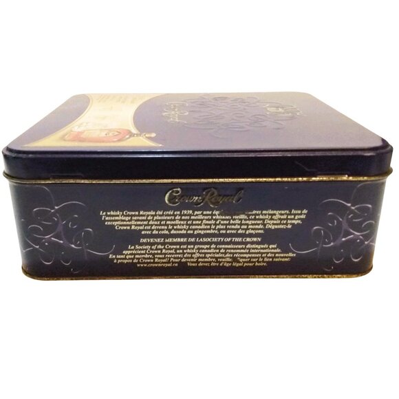 Includes Purple, 2005 Crown Royal Tin. 1 Empty 375 ml. Crown Royal Bottle and 2 Engraved Crown Royal Glasses.