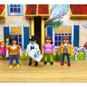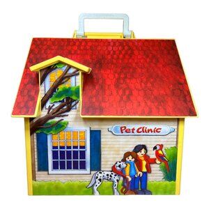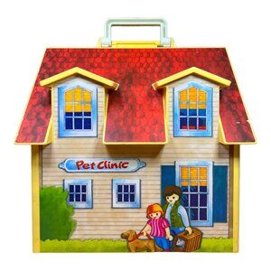 Vintage 2005 Playmobil Carry Along Folded Up Pet Clinic & 4 Figures