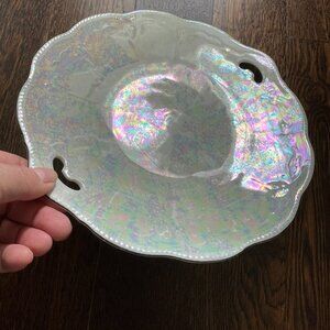 Selling a gorgeous Vintage 1920s Union K Porcelain from Czecho-Slovakia plate/platter lustreware with a mother of pearl luminescent glaze. Beautiful rainbow shimmer to it. Approximately 10" in diameter. Great gift.