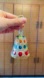 Stunning vintage handbell crafted from high-quality 24% lead crystal glass. The crystal bell body features an intricate cut pattern with vibrant multicolored accents in red, blue, green and orange. The handle has a faceted top and subtle yellow tint. It rings with a clear, pleasant tone when gently rung.